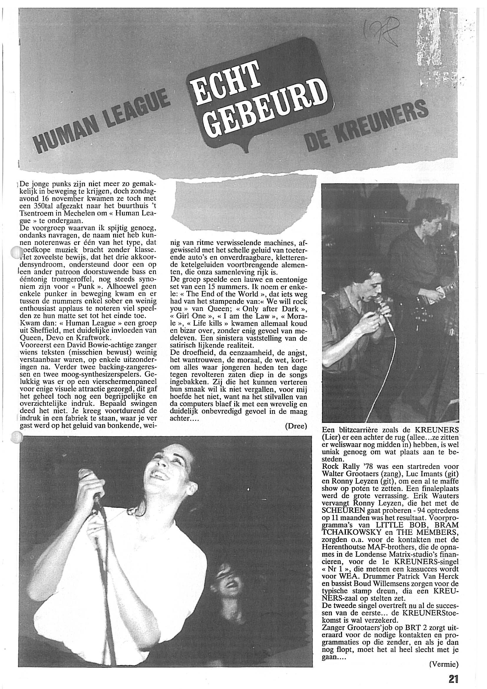 De Kreuners in het voorprogramma van U2 in Brussel (1981)